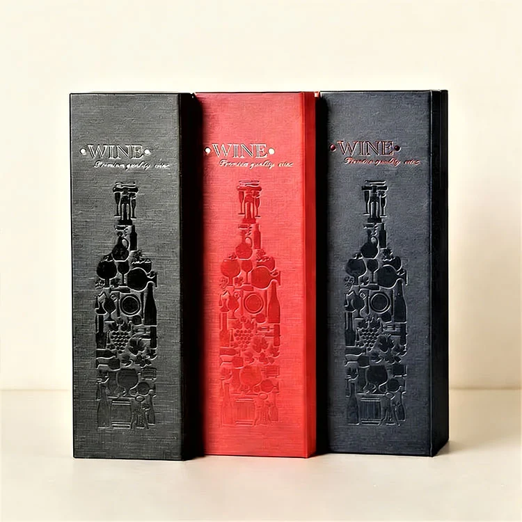 De wijnverpakkingsdoos van Bonnie Craft is gemaakt van hoogwaardige materialen, geschikt voor verschillende wijnverpakkingsbehoeften. U kunt kiezen uit mat kraftkarton, hardboard met houtnerfcoating of premium kunstleer. Elke grondstof is zorgvuldig geselecteerd, met een evenwicht tussen sterkte en esthetiek. Dit zorgt voor een hoogwaardige positionering van de wijn en biedt een solide bescherming voor de fles, waardoor schade tijdens transport en opslag wordt voorkomen.
